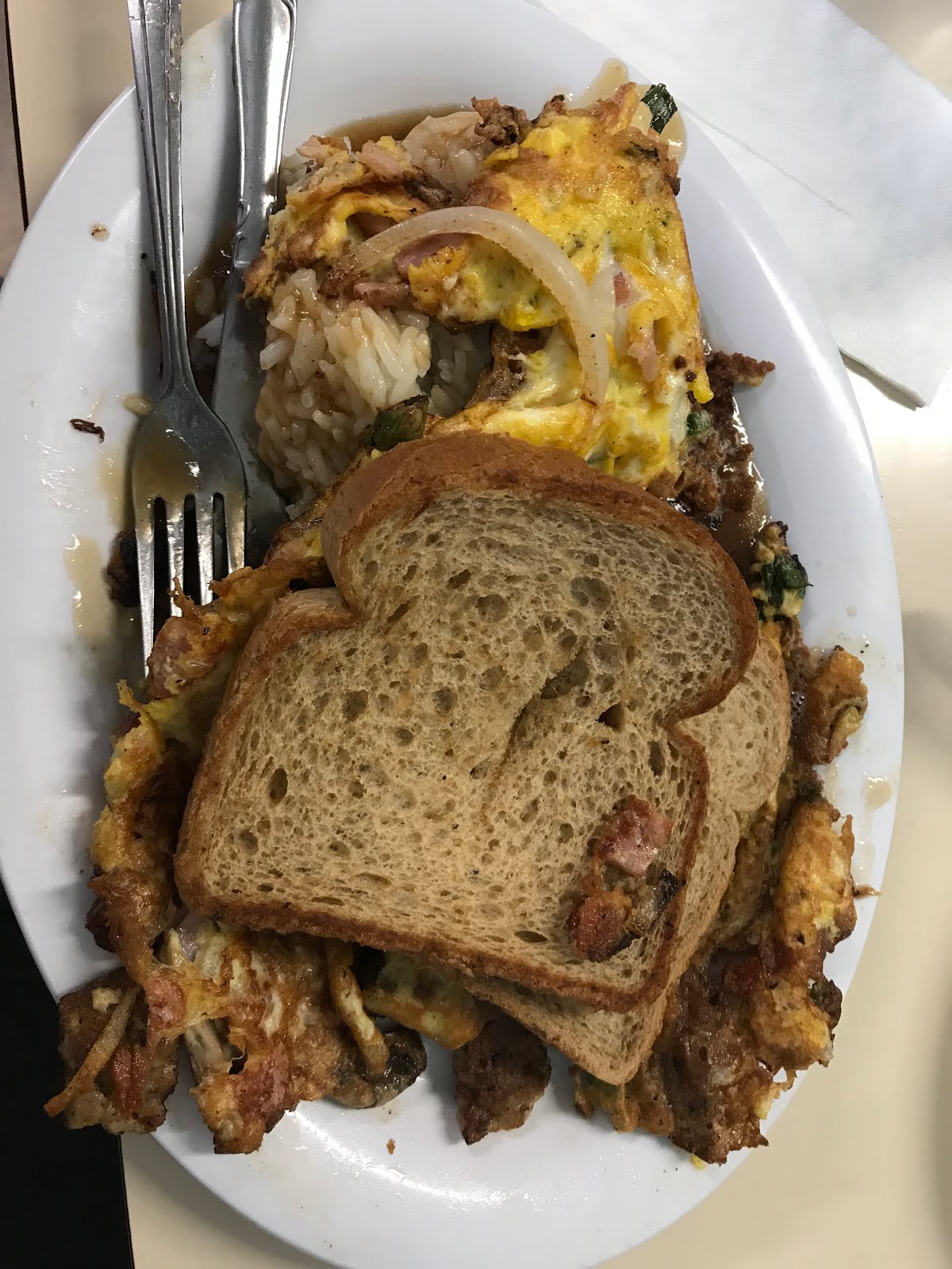 | Combination Omelette With Meat and Vegetables and Toast |